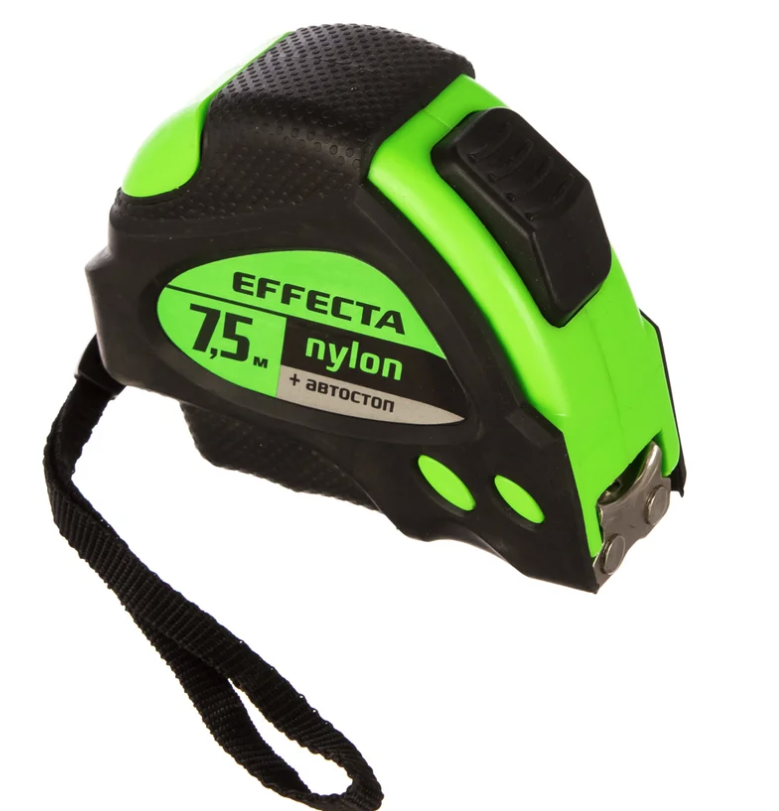 Рулетка 7,5м/25 мм с магнитом, автостопом, лентой нейлон EFFECTA Nylon 587525 удобна при работах на строительной площадке и в мастерских. Инструмент оснащен прочным корпусом, который легко выдерживает сложные условия эксплуатации.