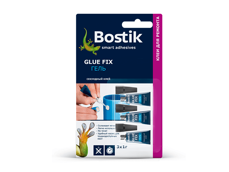 Bostik Glue Fix (Бостик Глю Фикс) – секундный клей-гель, основа которого цианоакрилат. Материал универсального применения идеально подходит для моментального склеивания и ремонта мелких изделий. Клей также станет отличным помощником для декорирования, хобби и творчества. Специальная усиленная формула материала позволяет быстро и удобно наклеивать на любые поверхности.