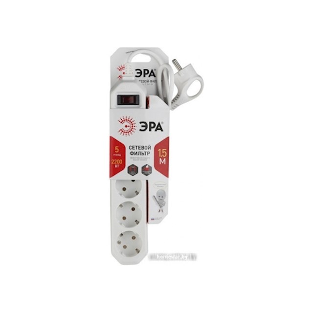 Сетевой фильтр USF-5es-3m-I ЭРА (сл. кость) с/з 3x0,75мм2 с выкл, 5гн 3м