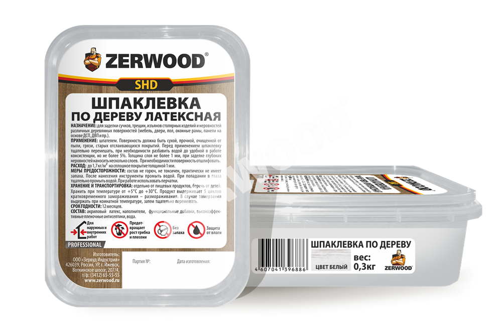 Тонкодисперсная латексная шпаклевка для заделки сучков, трещин, изъянов столярных изделий и неровностей различных деревянных поверхностей (мебель, двери, пол, оконные рамы, панели на основе ДСП, ДВП и пр.)