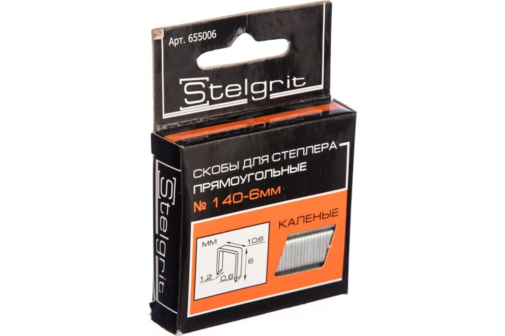 Cкоба Stelgrit 655006 является сменным элементом для степлеров. Изготовлена из углеродистой стали и закалена. Применяется для скрепления между собой различных материалов. Тип скобы — 140. Количество в упаковке — 1000 шт