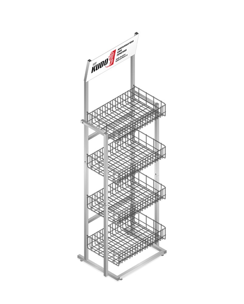 Стойка рекламная монтажная пена и герметик Kudo,555х450х2000полки,металл,серый