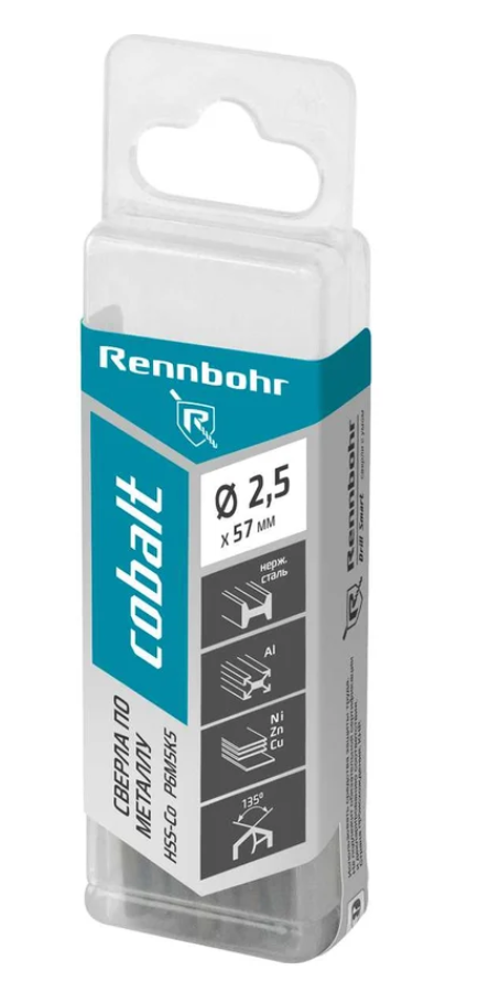Сверло по металлу 2,5 x57 мм, HSS-Co RENNBOHR COBALT PROM (20шт/уп)
