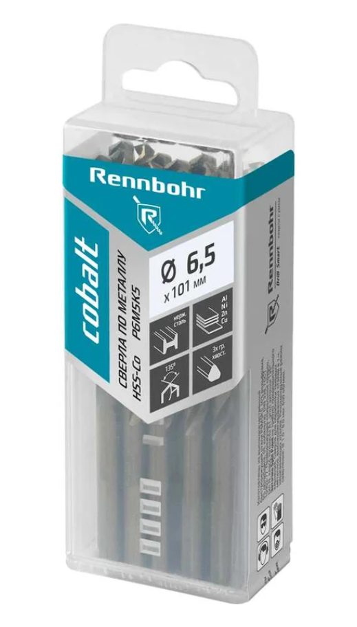 Сверло по металлу 6,5 x101 мм, HSS-co RENNBOHR COBALT PROM (20шт/уп)
