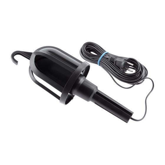 Светильник переносной под лампу с цоколем E27 (рабочая лампа). Предназначен для внутреннего освещения жилых и общественных помещений. Рассчитан для работы в сети переменного тока с номинальным напряжением 250 В и частотой 50 Гц. Максимальная мощность для лампы накаливания – 60 Вт. Специальный подвесной крюк позволяет надежно закрепить светильник в момент эксплуатации, что делает его удобным для применения в гаражах или других подсобных помещениях.