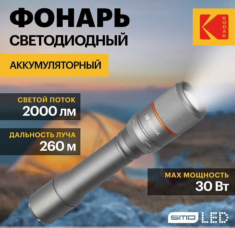 Светодиодный фонарь Kodak MA-5003 ручной аккумуляторный 30W