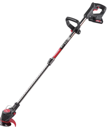 Аккумуляторный триммер ТА-200 с АКБ 21В с регулируемой передней рукояткой, телескопической штангой, с изменяемым углом наклона головки, с пластиковыми ножами и металлическим диском.