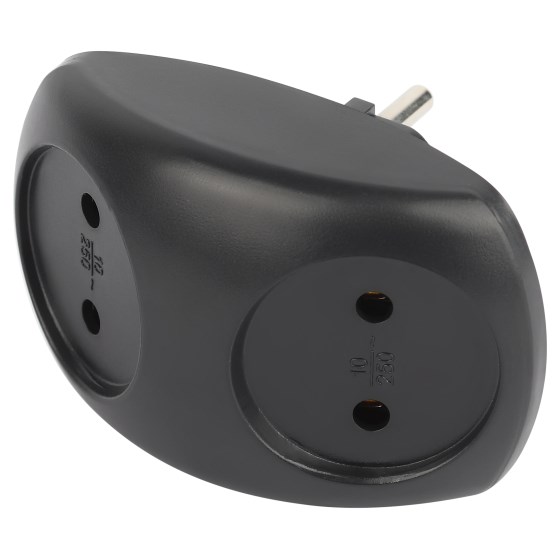 Тройник ЭРА SPx-2-В на 2 розетки б/з 10А ,черный