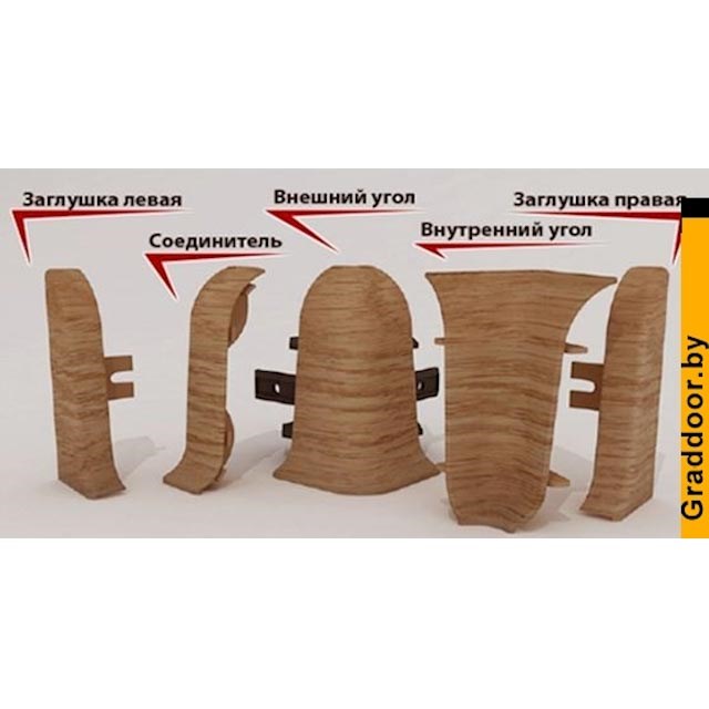 Комплектующиедля плинтусапредназначены для декорирования прямых, угловых стыков и окончаний. Прочно и удобно монтируются к плинтусу посредством незаметных внутренних фиксаторов.