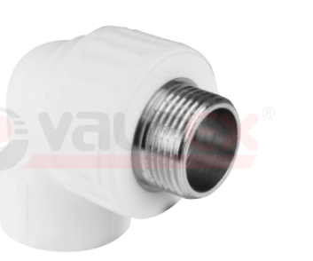 Комбинированный полипропиленовый фитинг. Используется для изменения направления потока и перехода на трубную резьбу. Латунные части производятся методом горячего штампования, пластиковые - методом литья под давлением.