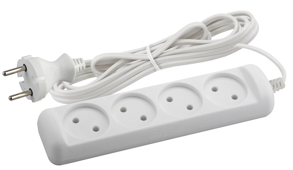 Удлиниль бытовой ЭРА. Серия UX Для подключения маломощных устройств до 1300Вт. Максимальная мощность 6 А/ 1300 Вт. Без заземления. Провод ШВВП.