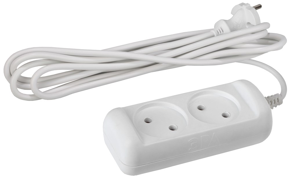 UX(6)-2-5m без заземления 2 розетки 5м ПВС 2x0,75мм2 6А белый Удлинитель ЭРА