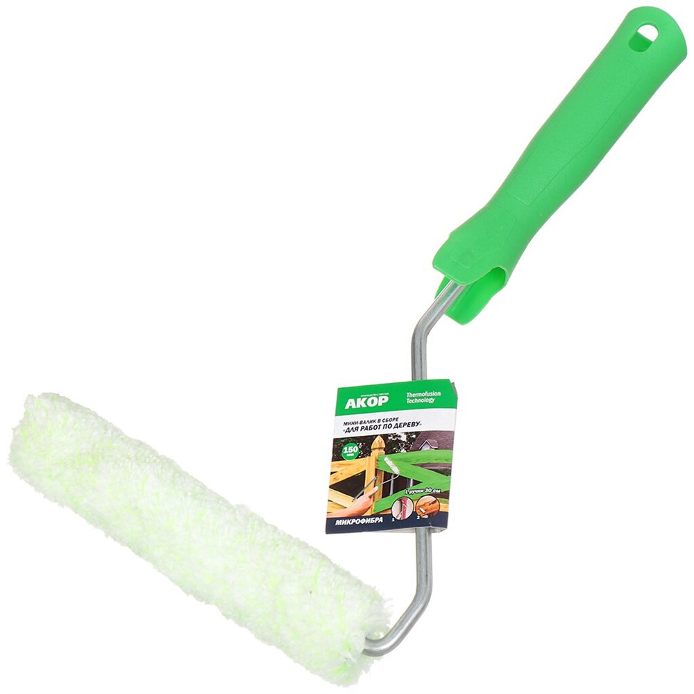 Мини-валик 150 мм микрофибра d 15 мм, бюгель 6 мм, ворс12 мм, белый сине-зел. полосой АКОР(55шт/уп)