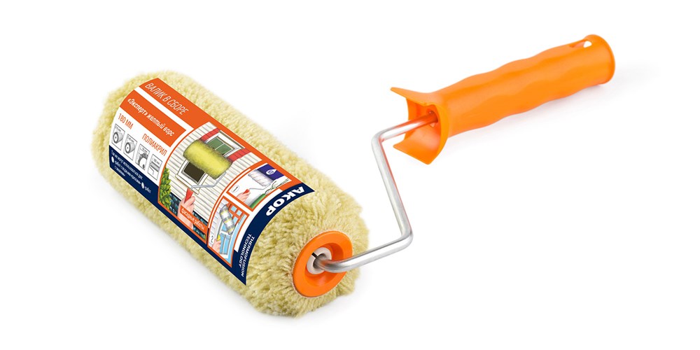 Валик 180 мм полиакрил d 40 мм, бюгель 6 мм, ворс 18 мм,АКОР «ЭКСПЕРТ» ЖЕЛТЫЙ ВОРС(35шт/уп) ФАСАД