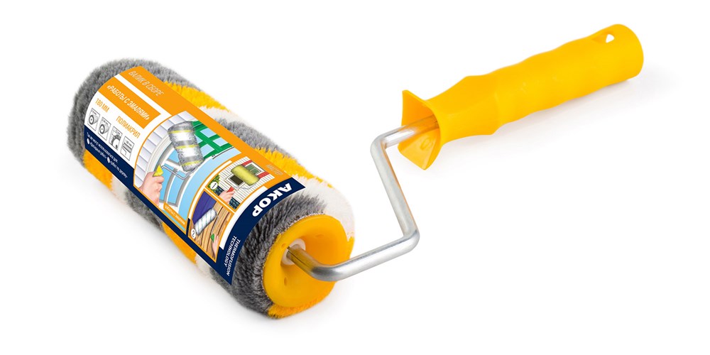 Валик 180 мм полиакрил d48 мм, бюгель 8 мм, ворс12 мм,желтый/серый/белый АКОР«МАСТЕР»(28шт/уп)ЭМАЛЬ