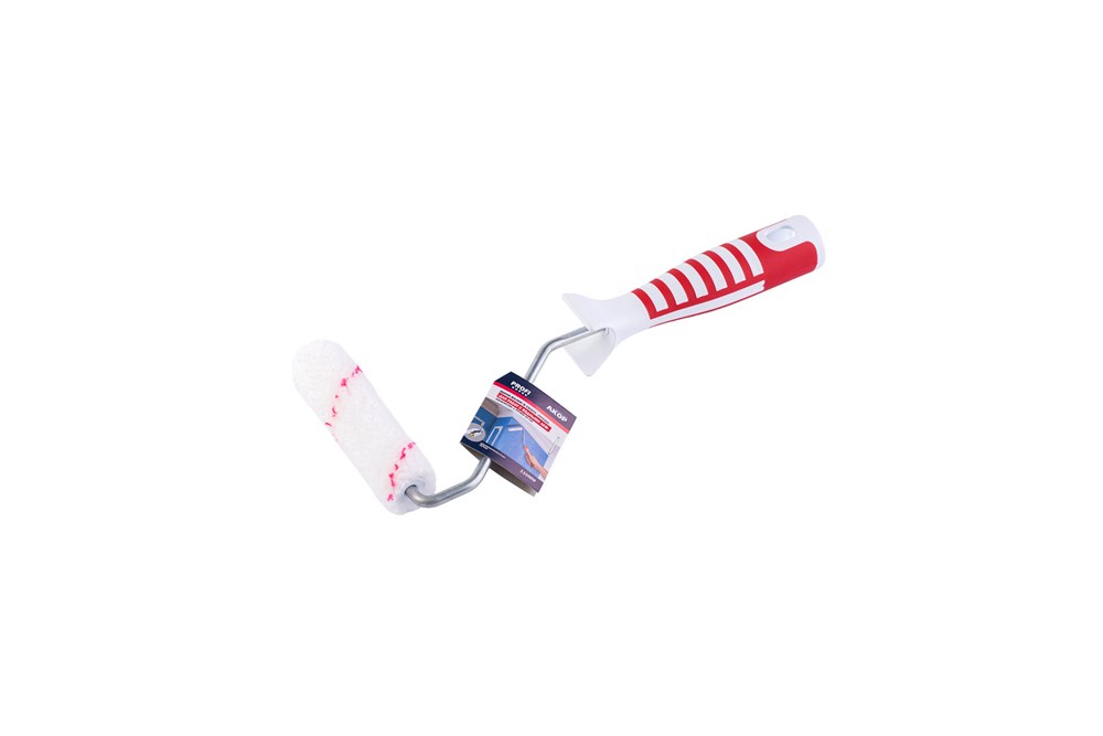 Мини-валик 150 мм полиэстер d15, бюгель 6 мм ворс 15 мм белый с красн. полосой АКОР(45шт/уп)