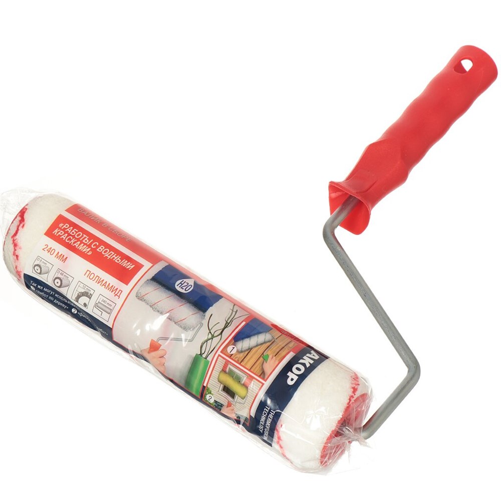 Валик 240 мм велюр/полиакрил d 40 мм, бюгель 8 мм, ворс 12 мм, белый АКОР «МАСТЕР»(20шт/уп)ВД КРАСК