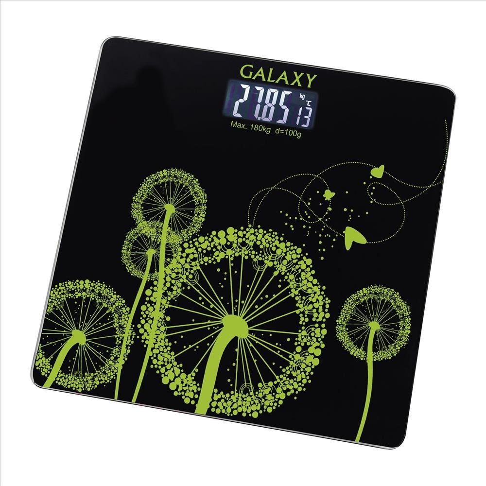Напольные электронные весы Galaxy 180 кг гл4802 не только точно измеряют вес, но и показывают температуру помещения. Все данные отображаются на большом жидкокристаллическом дисплее с подсветкой.