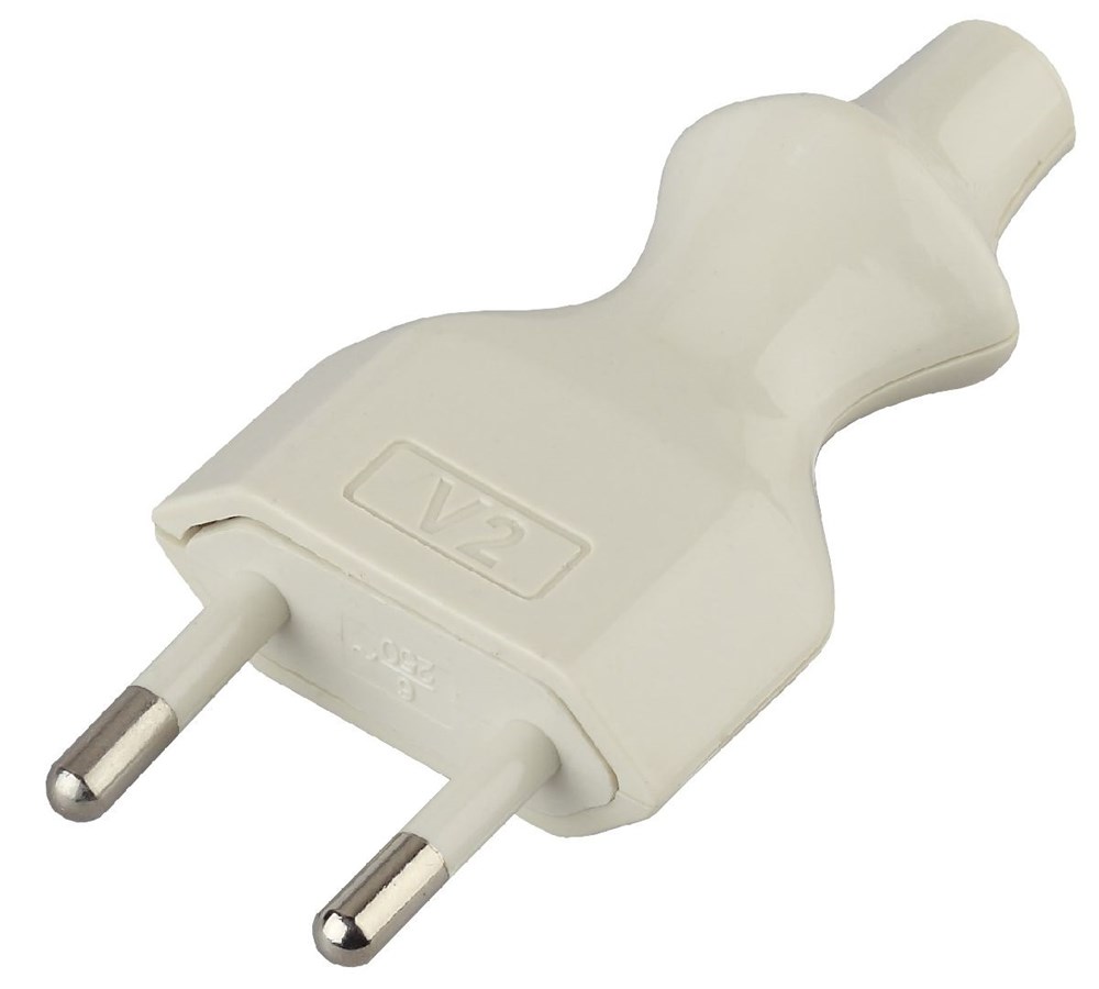 Вилка V2 ЭРА б/з 6А с кольцом прямой вход провода белая