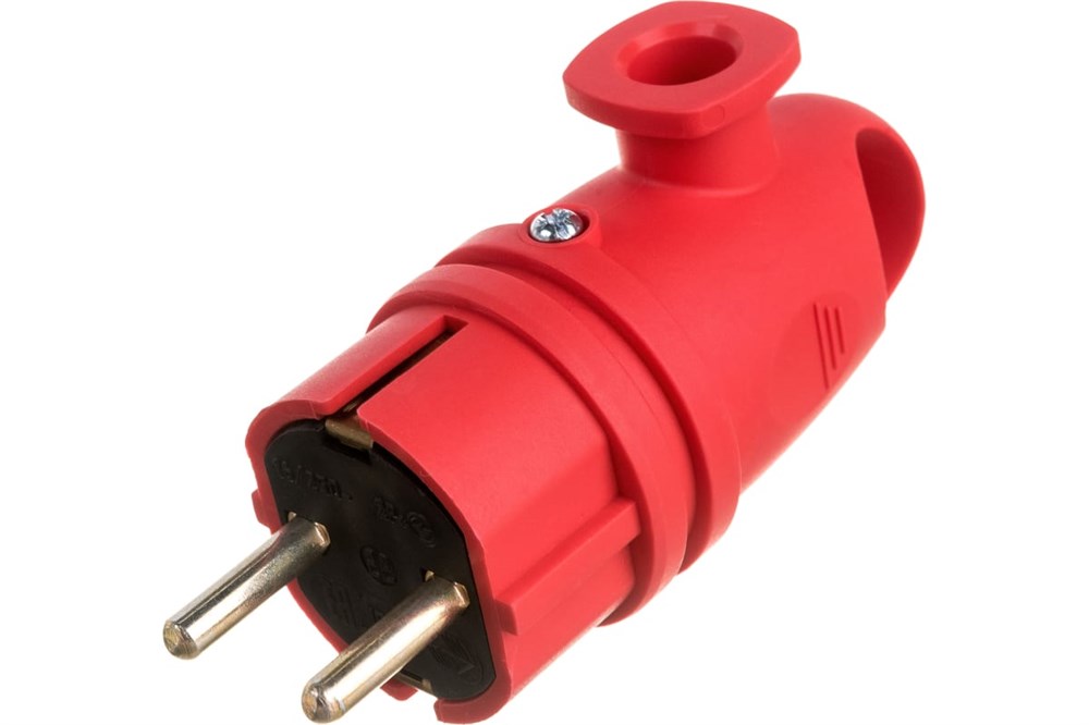 Вилка Vх11-R-IP44 ЭРА каучуковая c/з 16А IP44 с кольцом угловая красная