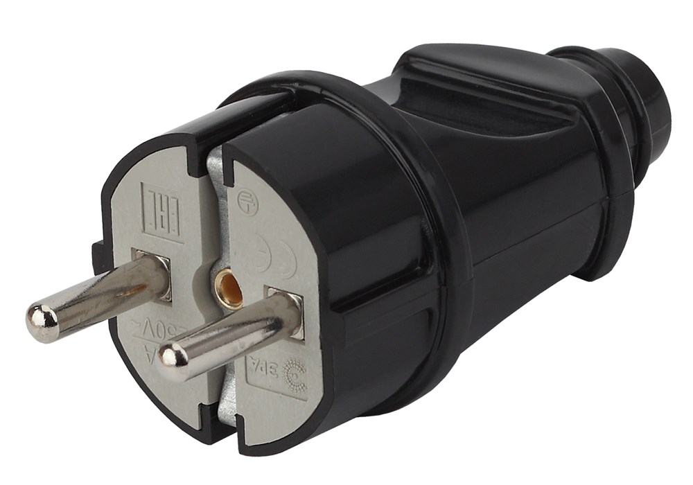 Вилка штепсельная ЭРА с заземлением, максимальная мощность - 16 A/3500 В (кабель до 3x1.5мм2), ABS-пластик