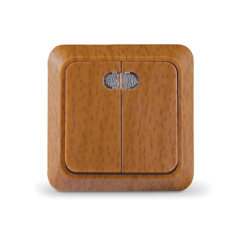 Выключатель двухклавишный с подсветкой "UNIVersal" серия "Олимп", о/у, 10А, 220В, бук (еврослот)