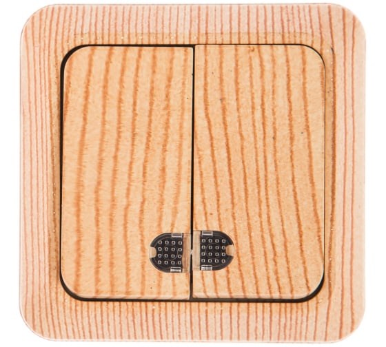 Выключатель двухклавишный с подсветкой "UNIVersal" серия "Олимп", о/у, 10А, 220В, сосна (еврослот)