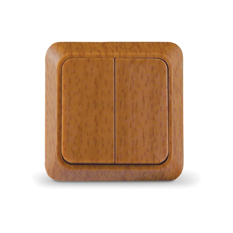 Выключатель двухклавишный "UNIVersal" серия "Олимп", о/у, 10А, 220В, бук (еврослот)