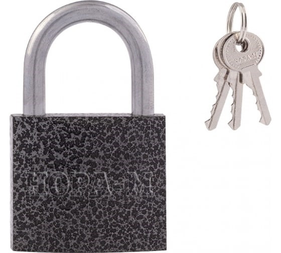 Замок навесной большой обладает автоматическим запиранием. В комплекте 3 стальных ключа.