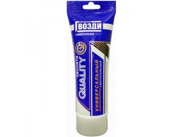Жидкие гвозди «Quality» универсальные – профессиональный строительный клей – современная альтернатива привычным металлическим гвоздям, шурупам и дюбелям.Назначение: для приклеивания изделий из пенополистирола, стеновых панелей, пробки, дерева / доски, кафельной плитки, ДСП, МДФ, металла, гипса, кирпича, гипсокартона, цемента, декоративного камня, пр.Цвет:белыйСостав: поливинилацетатные полимеры, наполнитель.Свойства:• время первоначального схватывания 15 минут• сила схватывания 90 кг/кв.м.• расход – 12 м (при нанесении сплошным слоем при диаметре среза носика 6 мм), температура применения от -10 до 30 °С• рекомендуемая — не ниже 15°С.• морозоустойчивость – допустимо замораживание без потери клеящих свойствУказание по применению:1. Склеиваемые поверхности должны быть сухими, чистыми, обезжиренными, хотя бы одна из поверхностей должна обладать способностью впитывания.2. Клей наносится на одну из склеиваемых поверхностей либо сплошной полосой, либо точечно.3. Склеиваемые поверхности сильно прижать друг к другу